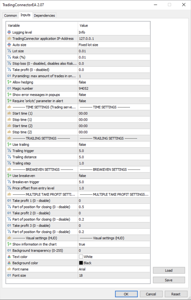 Magic Number – if this is set to 0, TradingConnector can be used to close manually opened trades.